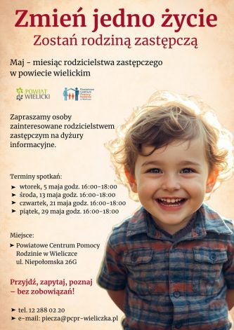 Przyjdź, zapytaj, poznaj – bez zobowiązań. Szczegółowe informacje można uzyskać pod numerem telefonu 12 288 02 20 oraz mailowo: piecza@pcpr-wieliczka.pl